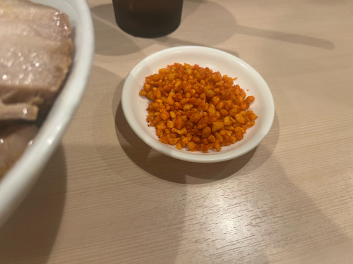 ここの特徴は大判な豚とトッピングの辛揚げ( *´艸`)
